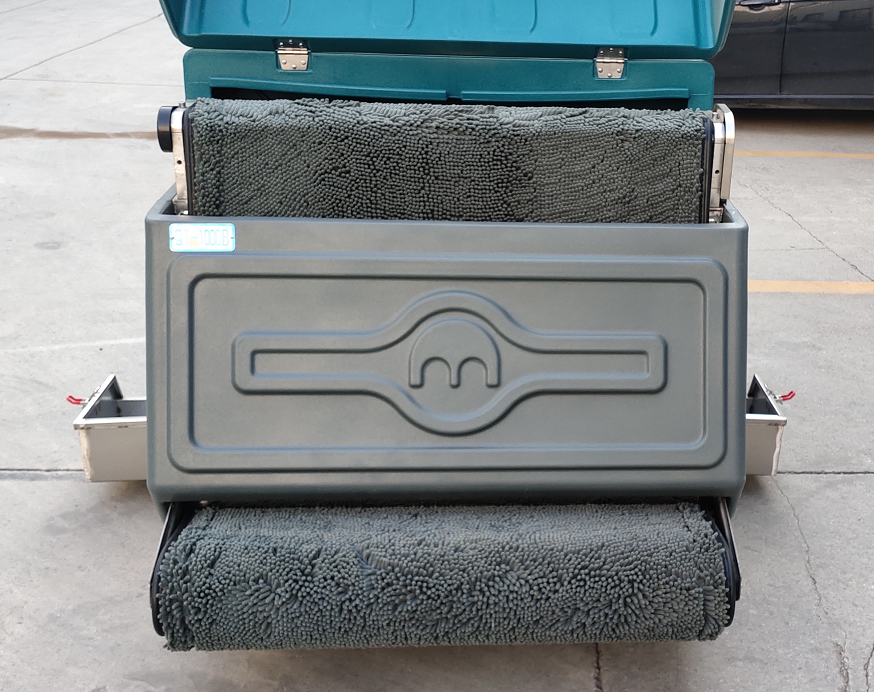 帶有拖地功能的掃地車作為2010年之后新興起的電動掃地車,在掃地的同時用后置拖具拖洗地面,使得地面更加干凈而且不傷石材。拖具采用循環水洗技術,拖布在水箱中高速旋轉清洗,保證拖具本身的潔凈,潔凈的拖布拖地可以避免二次污染。但帶有拖具的掃地車體積和重量如果設計不好,將影響掃地車的使用場景和適用范圍。