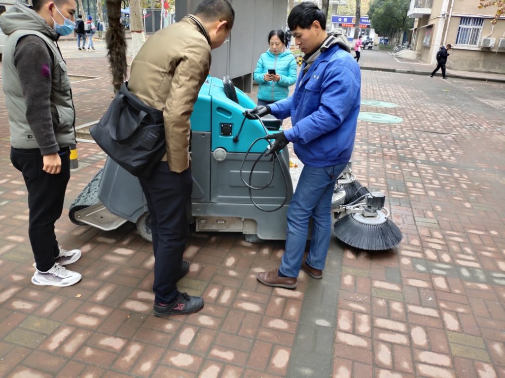 清晨雨拖地車師傅在鄭州輕工業大學現場學試用