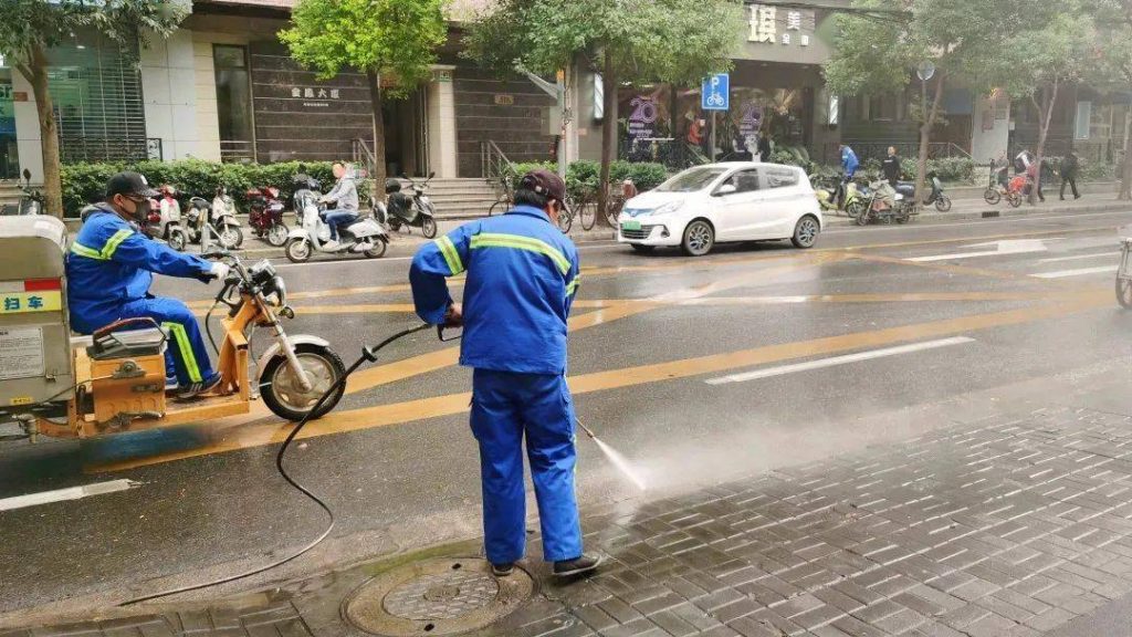 “每次環衛工人掃地的時候,我們都要帶一盆水來幫忙灑水,免得灰塵落在店里的衣服上,”李梅說,她在鄭州友愛路上的秀女坊服裝店工作,我仍然能看到10年前環衛工人用大掃帚掃路的情景。
