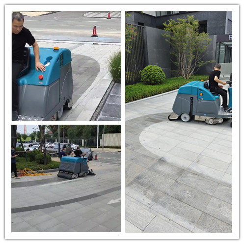 7月26日鄭州清辰雨清潔設備有限公司的銷售經理和送車師傅在某個小區的主干道上,操作人員駕駛著一輛小巧的掃地車,很靈活地清掃著地面。清掃帶拖地,整個過程看不到人工掃地時塵土飛揚的情景。掃過的路面,非常潔凈,甚至連邊邊角角都很干凈。