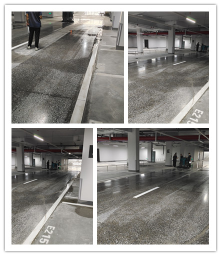 當天清辰雨的銷售經理和送車師傅,培訓著現場的的駕駛員操作著掃拖一體機,所到之處,除塵、清洗、拖地一次完成,用手使勁摸一下地面,沒一點灰塵和油膩感。時主管告訴我們,目前小區內數萬平方米的地下車庫,開荒完成以后每天都需要清洗1次,每次3小時左右,由兩名物業人員輪流完成。