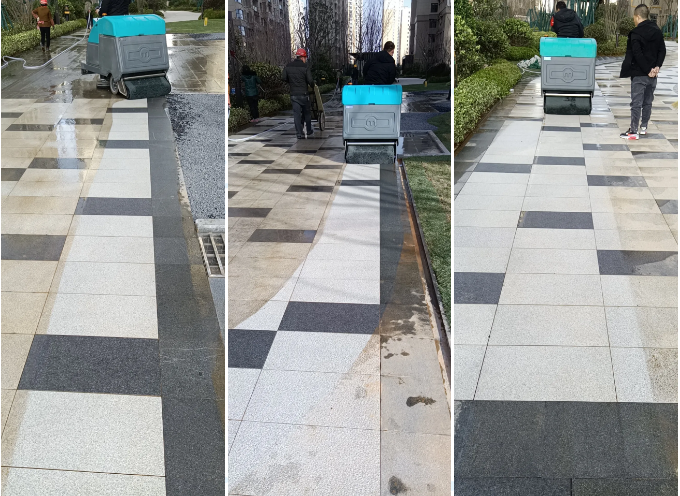 大白先給大家看看一組在 小區(qū)清晨雨駕駛式洗拖一體機的實用效果