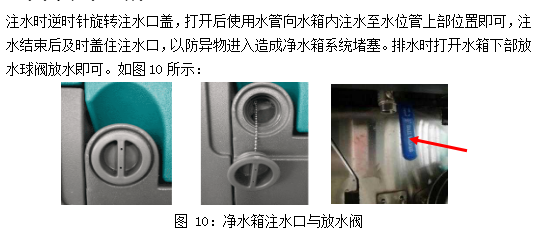 使用時每周要檢查一次過濾器是否有雜物或者堵塞,如有雜物需要及時清水從入水口灌入沖洗一下,否則會造成電磁閥故障或邊刷掃地時出水障礙